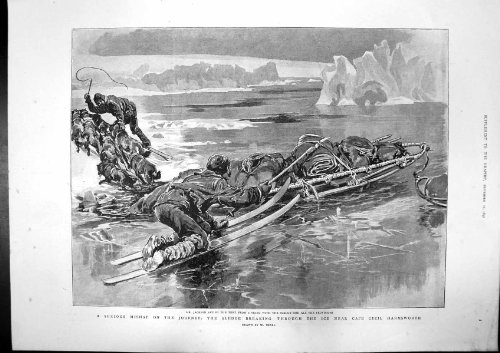 Antique Print of Sledge Through Ice Jackson Toast Queens Birthday Elmwood1897 An antique full reverse page print from the The Graphic. Data if known in the title. Size of each print is approximately 12 x 16 inches (300 x 410 mm). All of these antique prints are the genuine article and not reproductions. Please check image carefully for any damaged such as wears and tears.