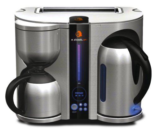 Description de l'article pourE.Zicom e.zicook UP! Combiné 3 en 1 Cafetière/Théière/Grille-Pain Acier Inoxydable 35 x 30 x 20 cm