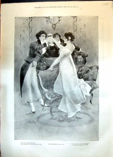 1899 Christmas Toast Celbration Romance Beautiful Lady Holly Full page and reverse from the Illustrated London News dated 1899, an illustrated weekly newspaper weeks date as shown on top of page, the size of each page is approximately (including margins as seen)10 x 14.5 inches (260x370).All are genuine antique prints and not modern copies, the Illustrated London News is an illustrated magazine which was first printed in 1842 and is the finest pictorial example of a historic social record of British and world events up to the present day. The ILN is known for its coverage of the following subjects the wars, ships, boats, guns, sailing, portraits, fine art, old and antique prints, wood cut, wood engravings, early photographs, Victorian life,...