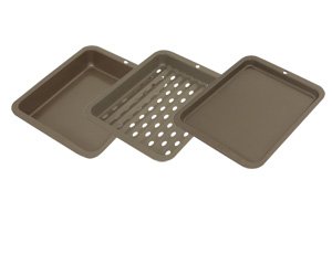 These unique compact Petite Bakeware pieces can be used with toasters or countertop ovens! The Non-Stick Petite Bakeware is designed for all your baking needs and perfect for one or two servings! Broil with ease when the Petite Roasting Pan is paired with the Petite Crisper Pan allowing the cooking surface to be lower!Specs: Each Piece measures 8 x 10 inches from outside edge to edge. Petite Bakeware is constructed for compact storage by easily nesting together. Set includes Petite Baking Sheet, Petite Crisper Pan and Petite Roasting Pan.