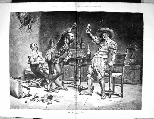 NOTE: Kindly use your own translator for the description below so you can get an accurate translation. Sporting Dramatic News 1883 Last Toast Men Drinking Fine Art Print A double page taken from our volume of the Illustrated Sporting and Dramatic News volume 2, but only contains pages from September 1883 to March 1884. A high class weekly journal featuring sports, arts, literature music and the drama. Each page is approx 22 x 16 inches (570 x 410) all are genuine antique prints and not modern reproductions. Please note these have binding holes that are sometimes quite noticeable and as these are very old the paper is be very fragile and brittle.