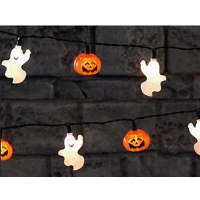 - Un ensemble de 20 lampes fonctionnant sur secteur dans un design de citrouille et fantôme.