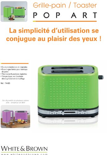 Description de l'article pourWhite & Brown TA623 Grille-Pain Pop'Art Vert Anis